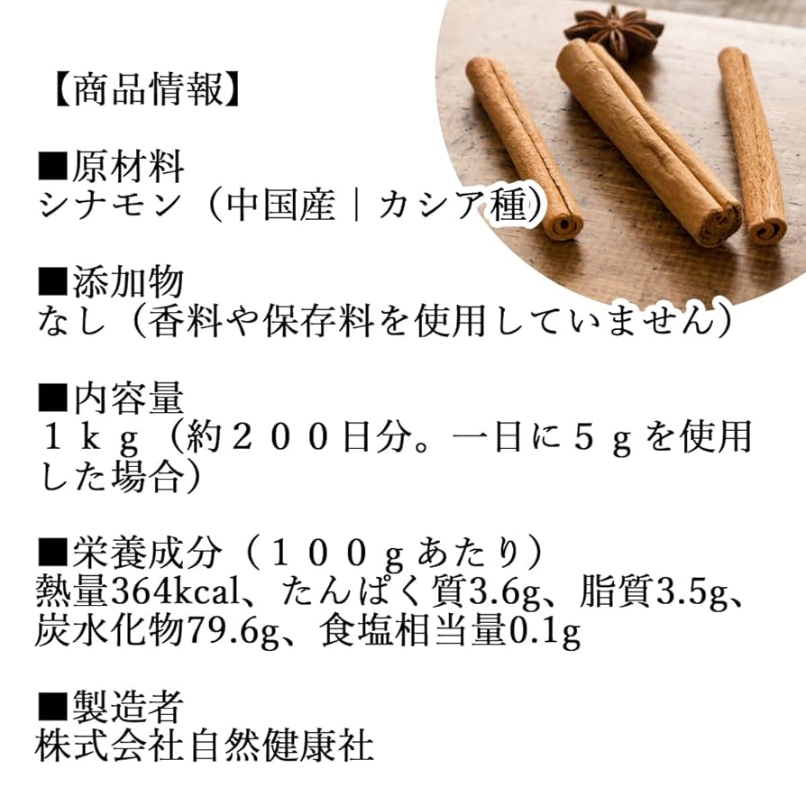 Amazon自然健康社 シナモンパウダー 1kg 無添加 業務用 カシア種自然健康社スパイス・ハーブ 通販。