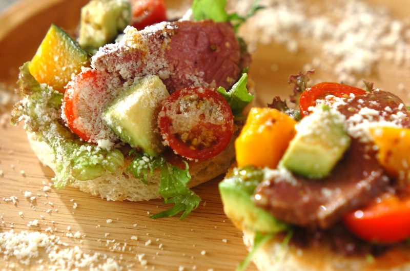 特製ソースdeローストビーフと野菜のオープンサンド♪。
