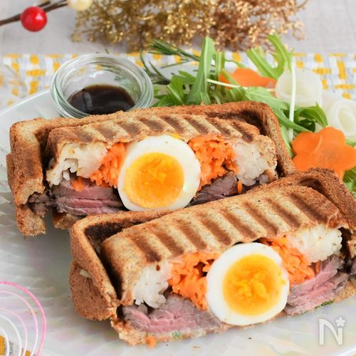 ローストビーフと卵のサンドイッチ - レシピナビ。