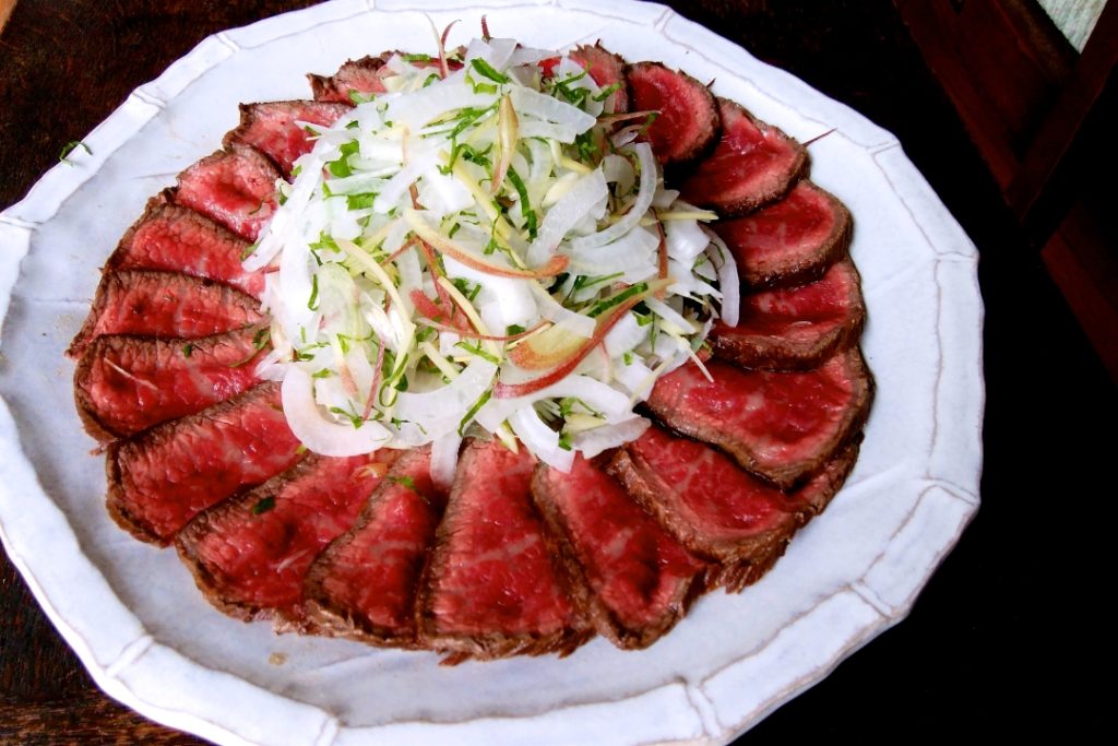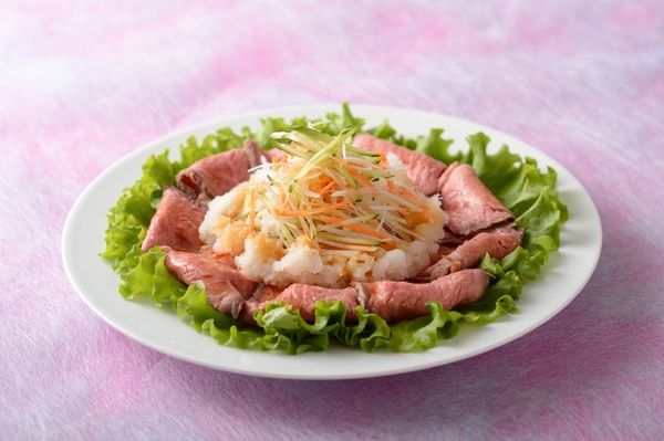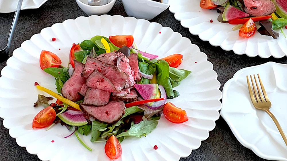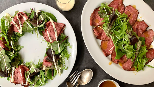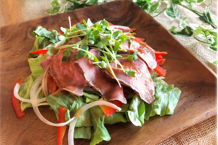 わさびドレッシングでいただくローストビーフのサラダ。