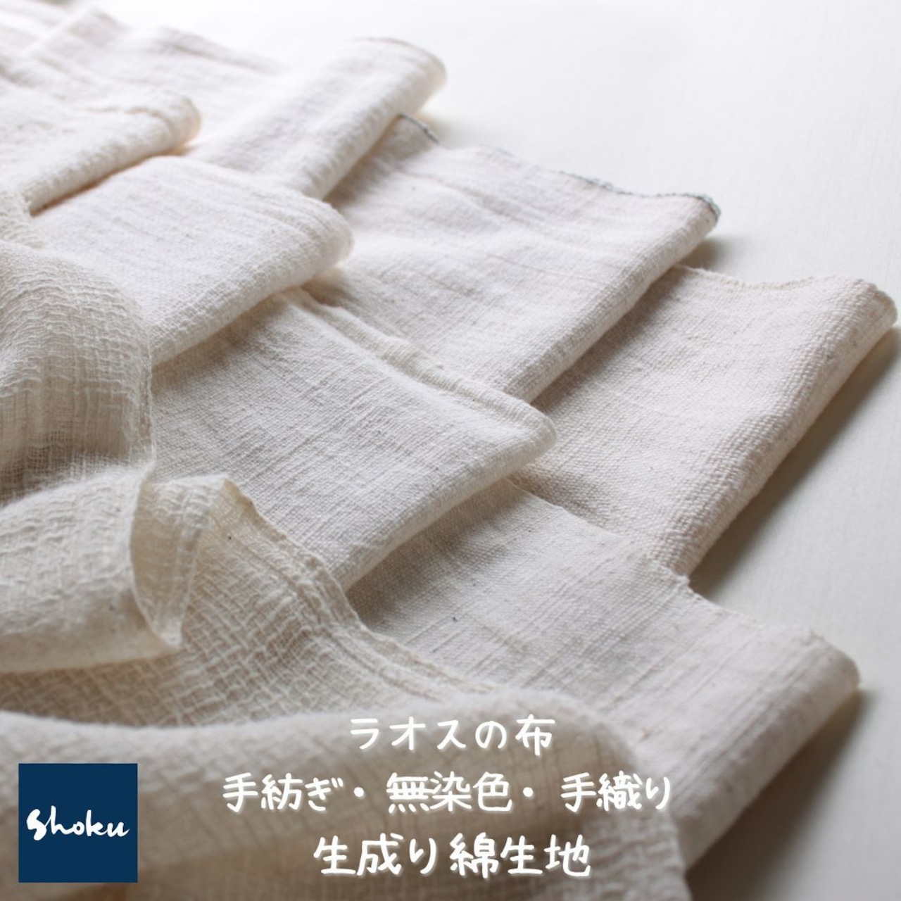 生成り生地 ラオス・ミャンマーの手紡ぎ・無染色・無漂白・手織り綿生地 330円 10㎝ Shokuの布Shokuの布。