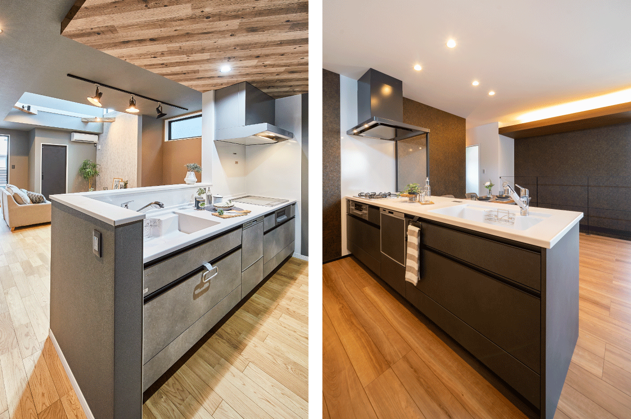 究極 フルフラット VS 立ち上がりキッチン岐阜の高気密・高断熱パッシブデザインの注文住宅はリグスタイル。