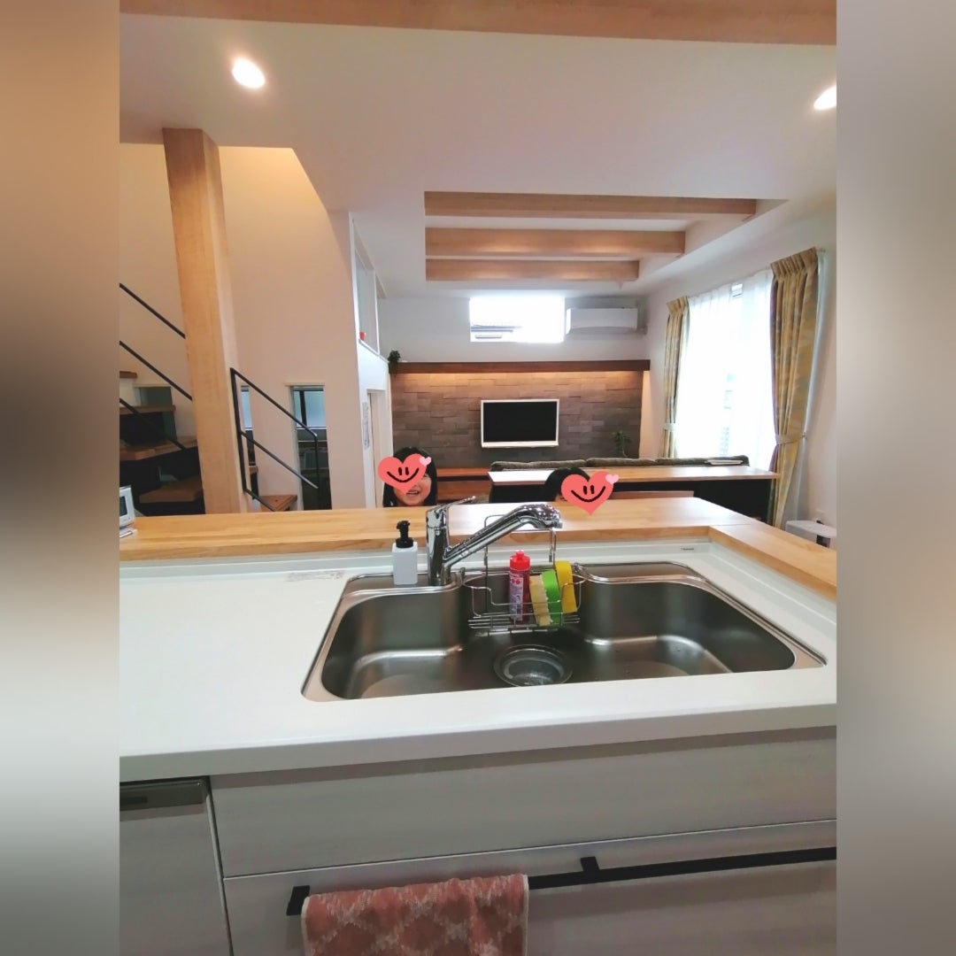 新居☆やってよかった 1キッチンの低い立ち上がり☆限りある資金で素敵なマイホームを☆〜中2階和室のあるお家。