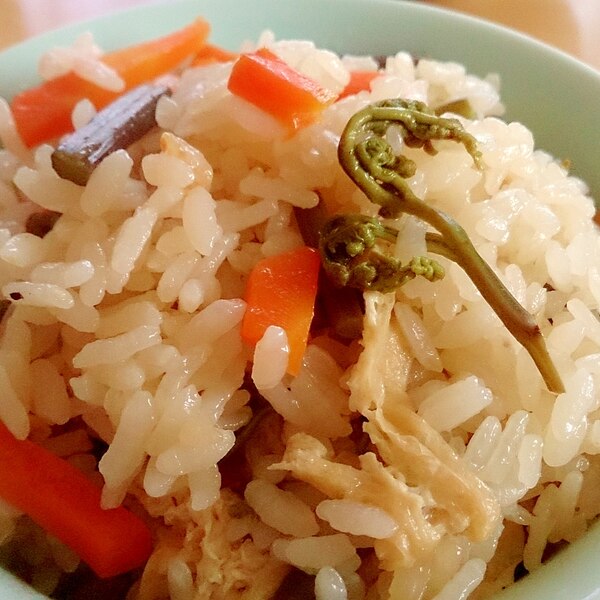 蕨 わらび の炊き込みご飯 わらびだけで美味しい♪。