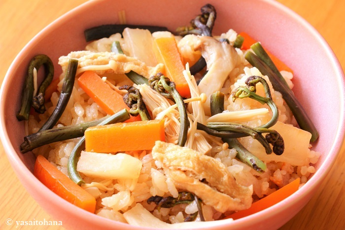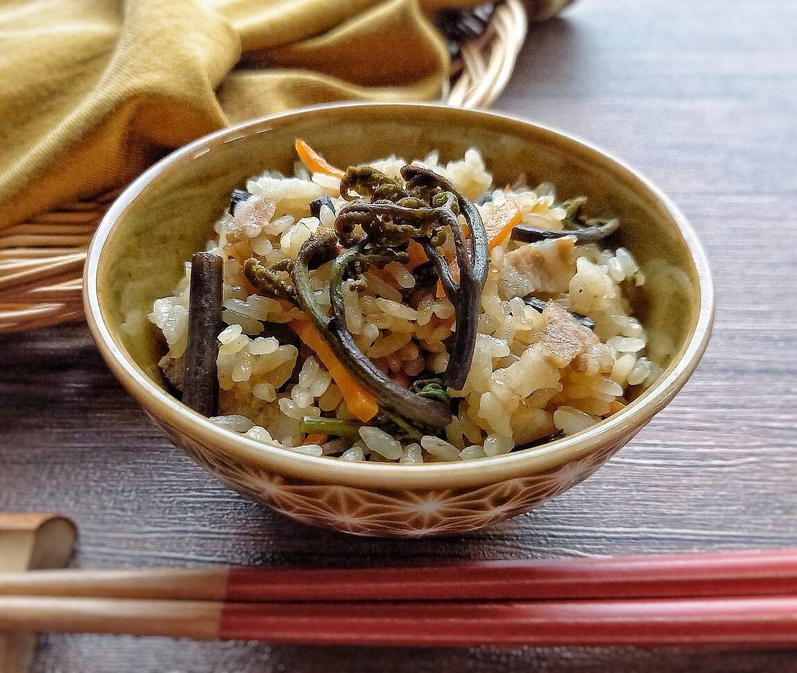 わらびの炊き込みご飯 –Organic Recipeオーガニックレシピ。