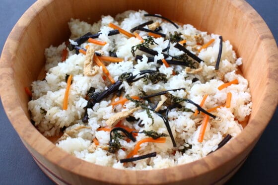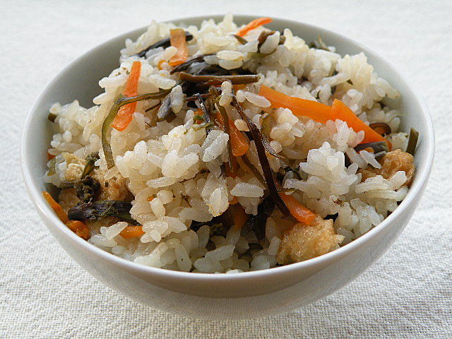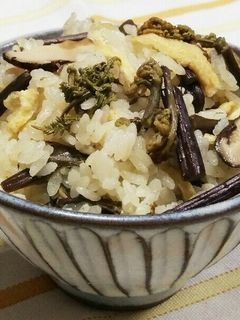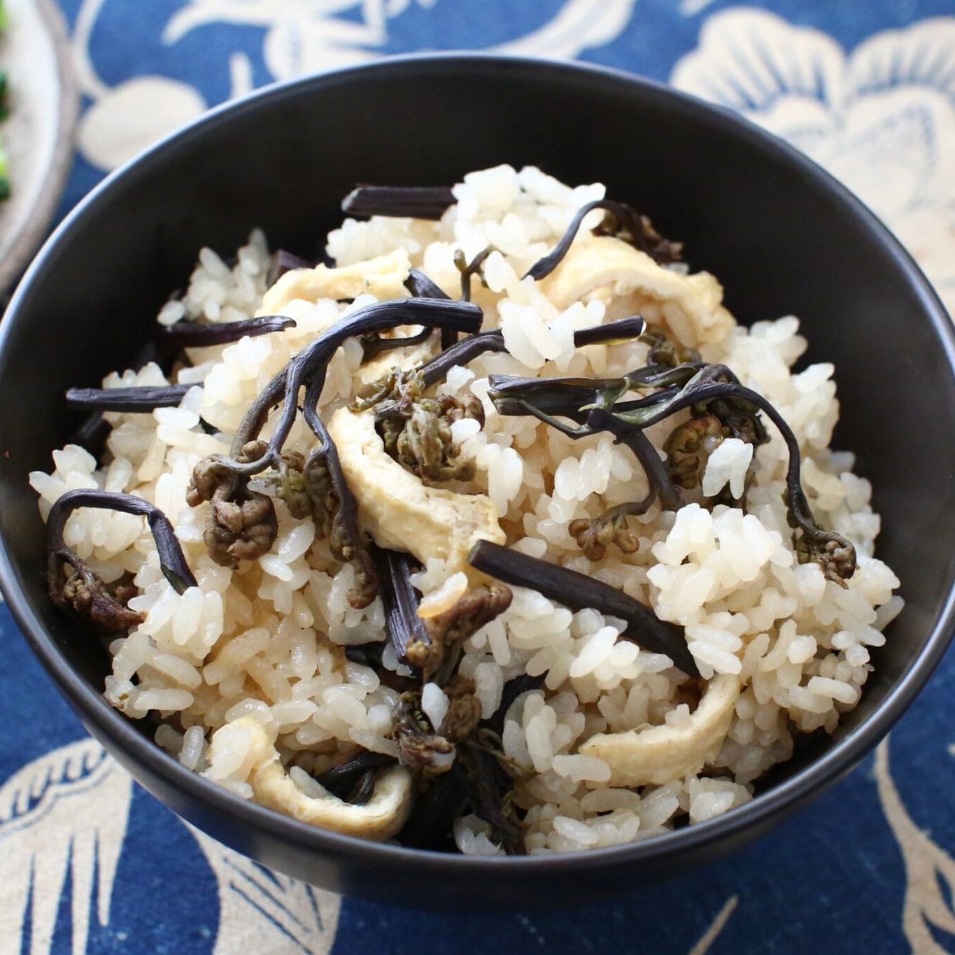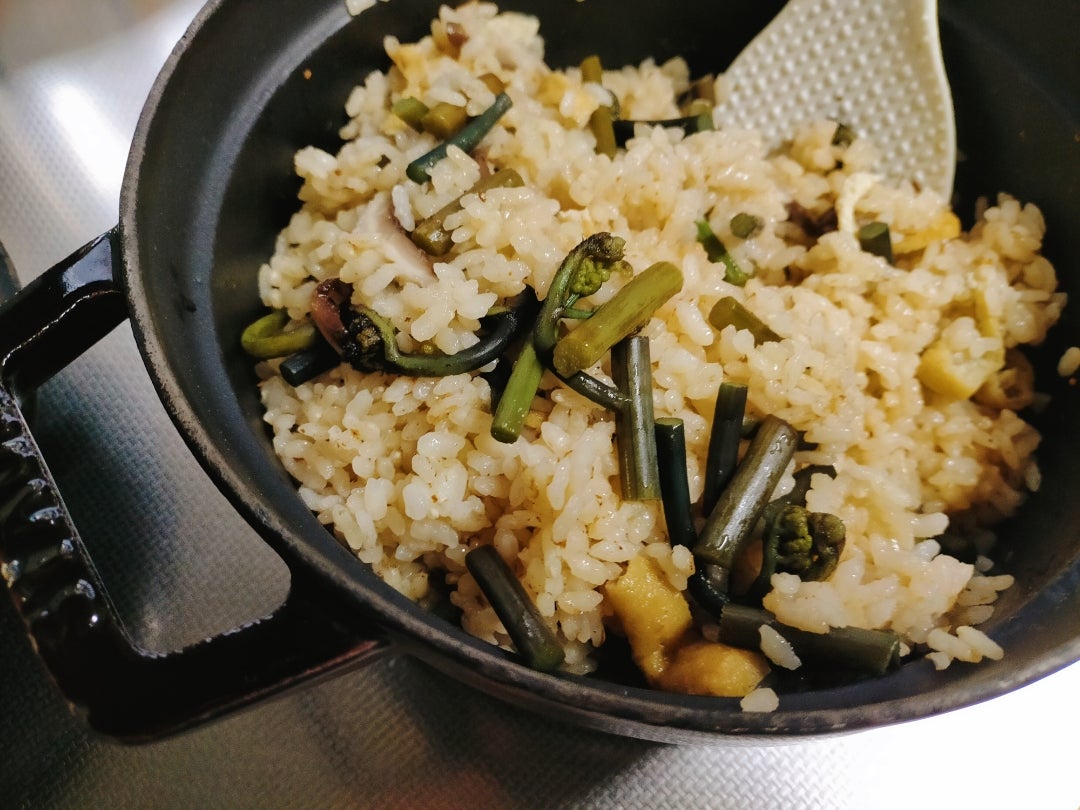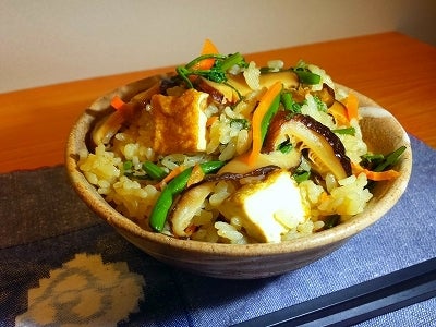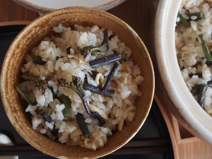 干ししいたけと厚揚げ わらびの炊き込みご飯Rumi's kitchen ルミズキッチン。