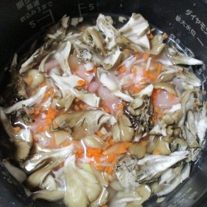 市販のつゆ1本で簡単に炊き込みご飯を作る!わらび入り鶏と舞茸の炊き込みご飯♪。