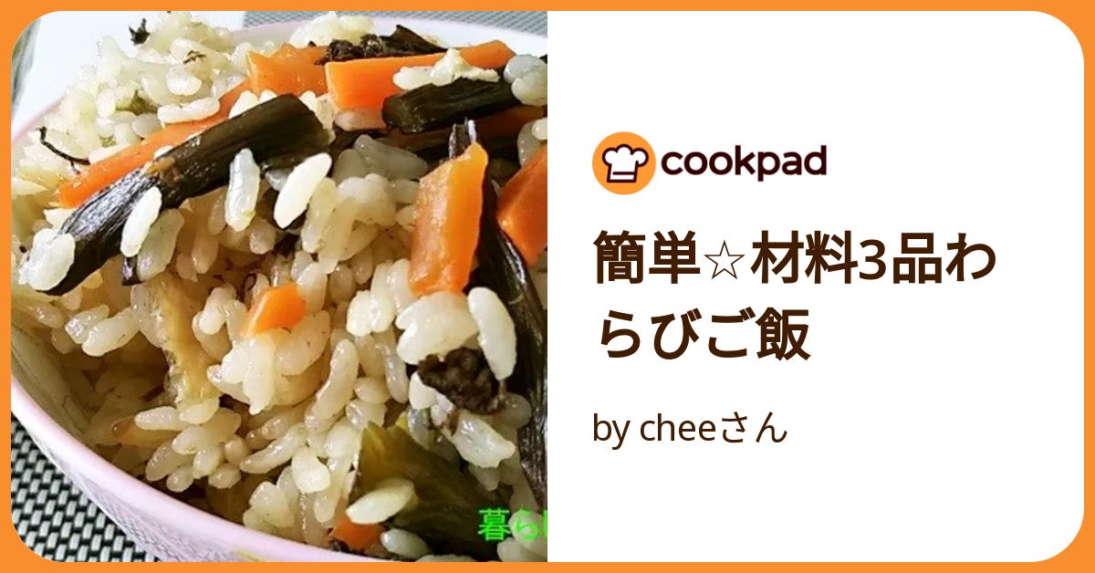 簡単☆材料3品わらびご飯 by cheeさんクックパッド簡単おいしいみんなのレシピが392万品。