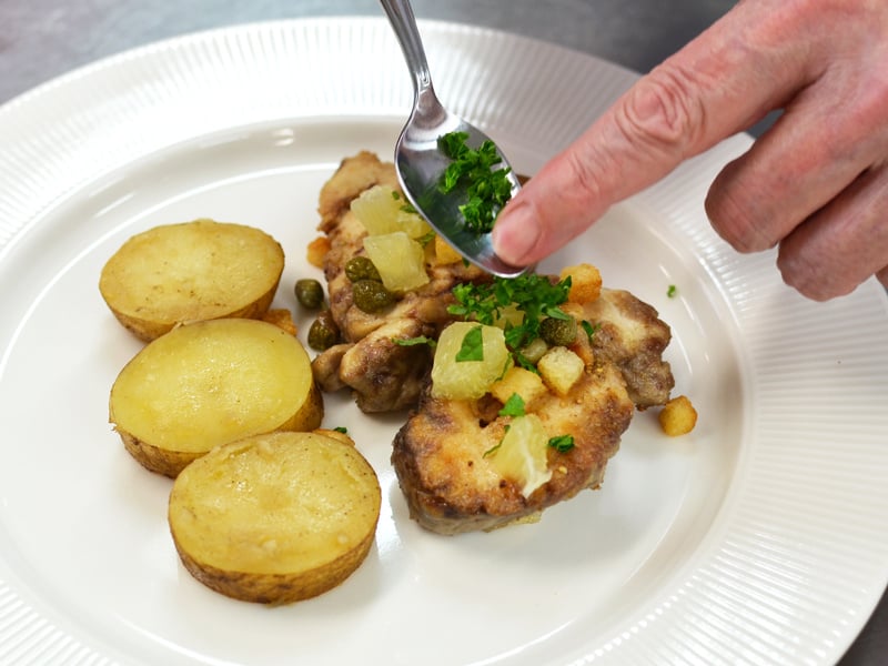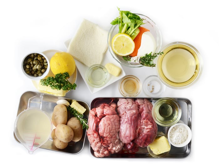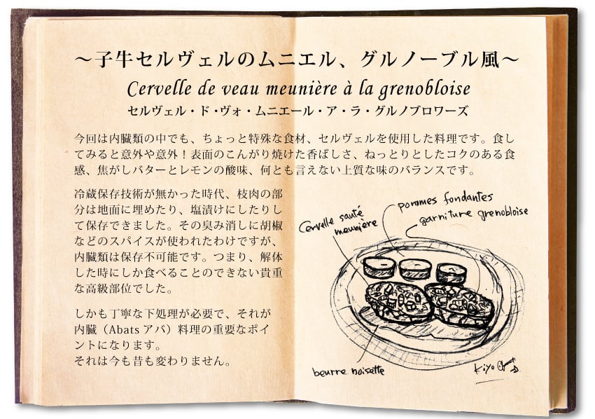 子牛セルヴェルのムニエル グルノーブル風子牛のブレイン 脳髄 を使ったレシピ。