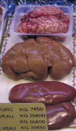 ベルギー・精肉コーナー:ウサギ・子豚・牛の脳2008年12月19日wasaweb.net。