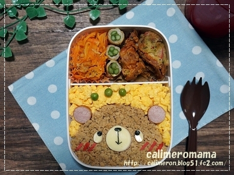 使い捨てランチボックスで♪くまさんキャラ弁2種 : かわいいおべんとう。