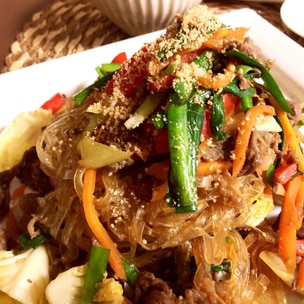 コストコのプルコギビーフで簡単〜ニラとタマネギ のピリ辛プルコギ丼。野菜ソムリエakkiの シンプル・ベジフル・キッチン。