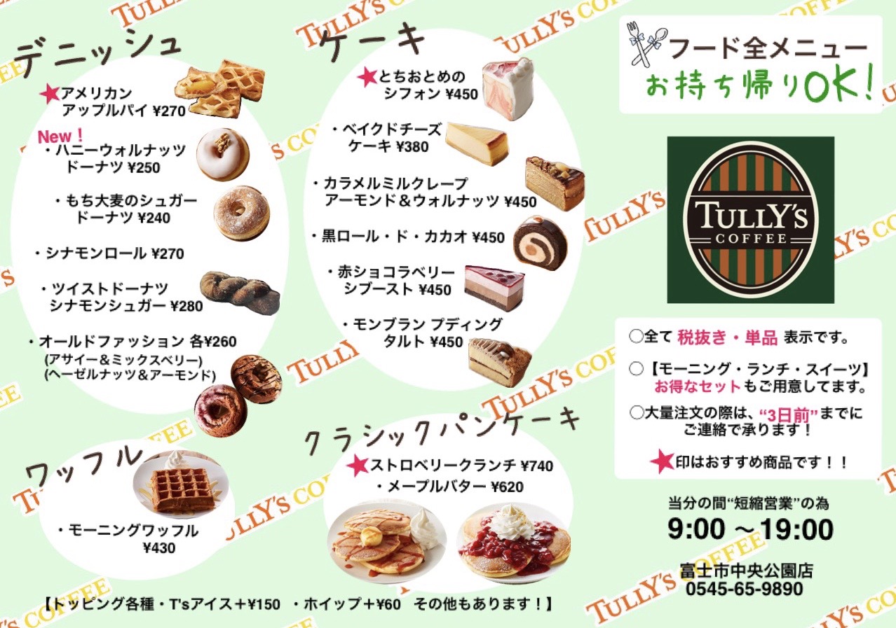 タリーズコーヒー富士市中央公園店 - テイクアウト ふじ。