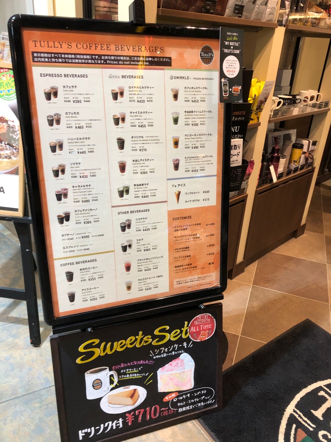ドリンク&フードメニューのご紹介タリーズコーヒー 高知桟橋通り店。