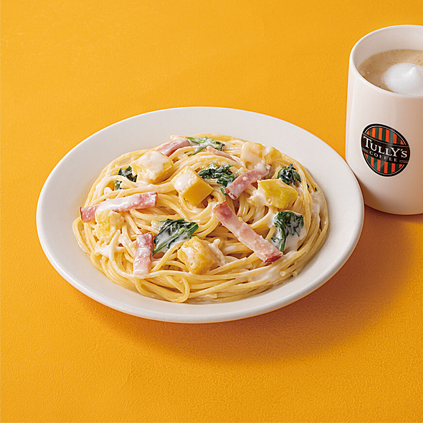 タリーズコーヒー - ランチタイムのおすすめメニュー🍝 豊かな旨みとスモーク感のある パンチェッタを使用したカルボナーラです。まろやかで濃厚な味わいのパスタです🍝 同僚や友だちとのランチタイムに。 お好きなドリンクと一緒にお召し上がりください。