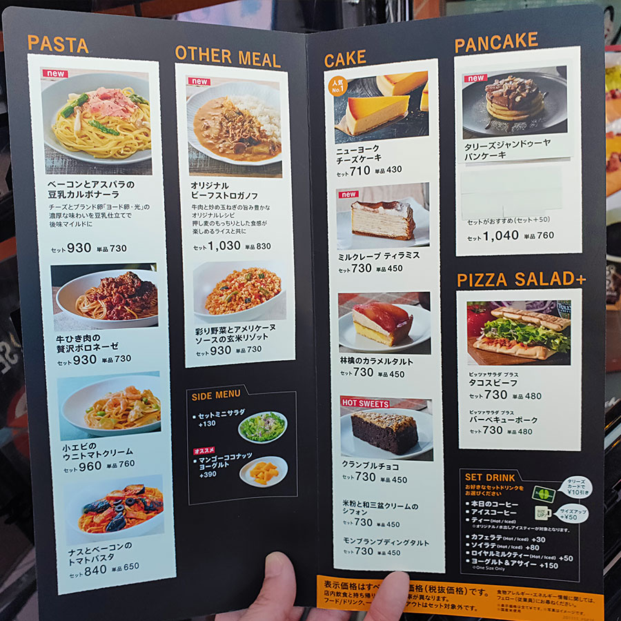 タリーズ メニュー表 モーニング・食事・スイーツ・ドリンクカフェレポ。