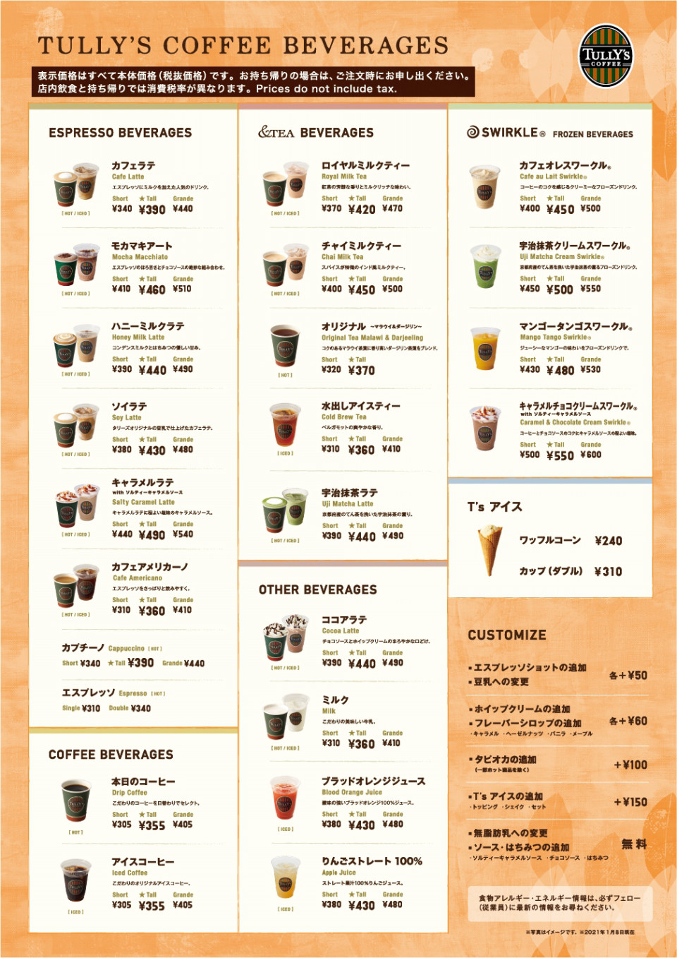 徹底解説 タリーズは全メニューテイクアウトできる?値段やカロリーも - macaroni。