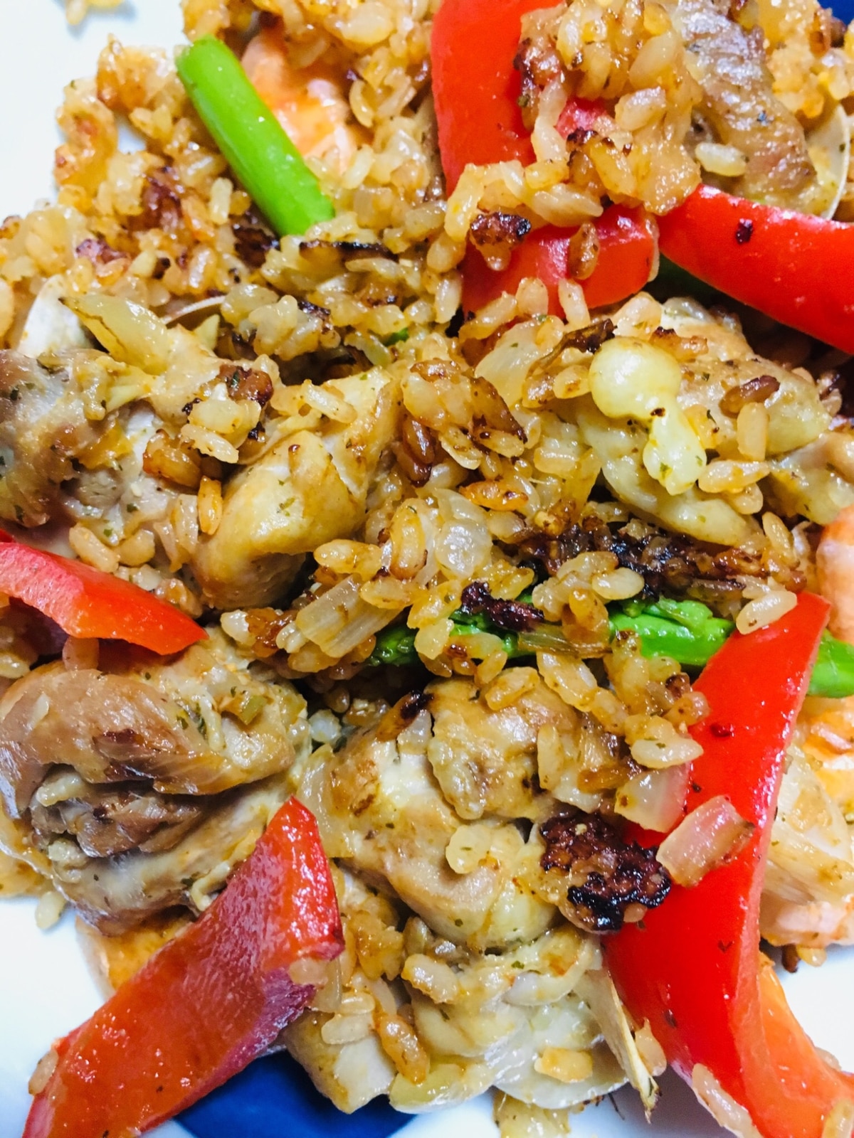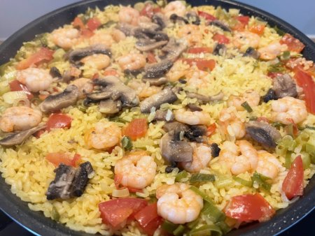 フライパンで 簡単パエリア サフランの代わりはターメリック 桜央里Snapdish スナップディッシュID:zKKS5a。