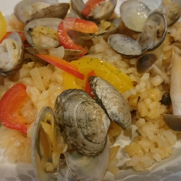 あさりなし、サフランなしのパエリア 美味しかったですo *^▽^* o~♪めぐばぁばの手料理&ボーダーコリームギ。