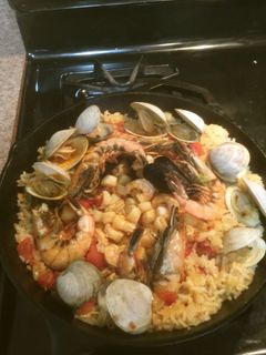 ダッチオーブンで作ったパエリアが味も見た目も最高だった。