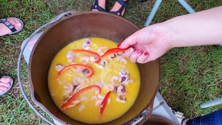 ダッチオーブンで簡単手抜き!パエリアのレシピを紹介ずぼらキャンプ女子。