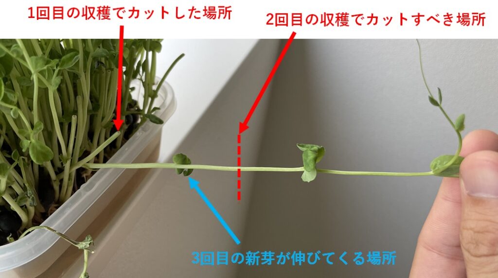 豆苗の再収穫は何回できる?茎はどの位置で切るのがいい? 写真で解説いちかばちか晴れブログ。