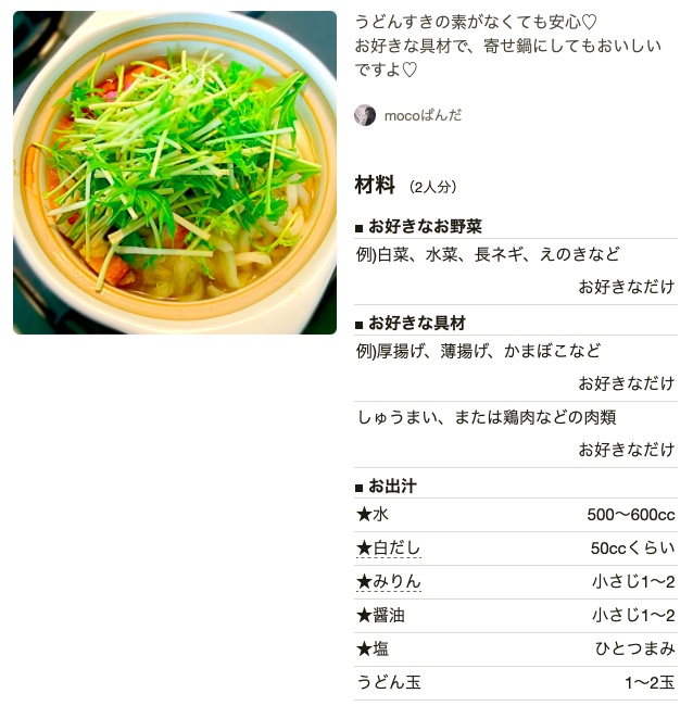 簡単!失敗知らず♪白だしのうどんすき♡ by mocoぱんだクックパッド簡単おいしいみんなのレシピが392万品。