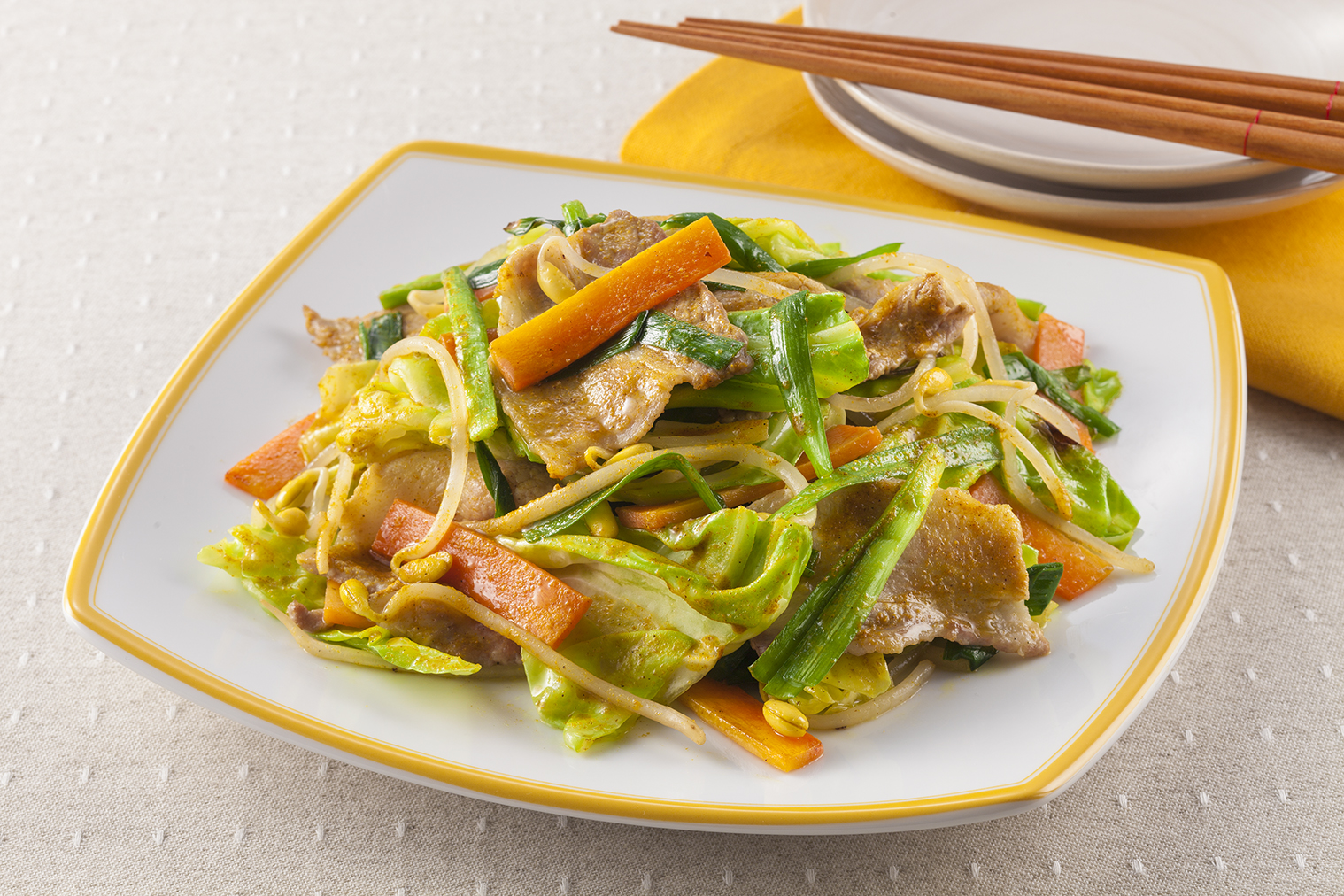 豚肉と野菜の和風カレー炒めeフレンズ ぱくぱく献立くん。