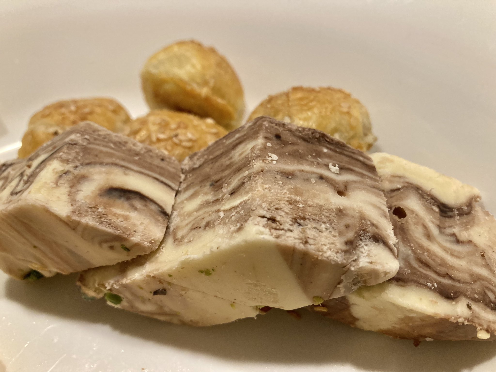 長谷川 眞也 on X: "ご近所の方からいただいた、ウズベキスタンのお土産。マーブル模様のお菓子 ハルヴァ は、ナッツを含んだホワイトチョコのような感じ。すごく甘くて濃厚。https:t.co iga42RxIZT"X。