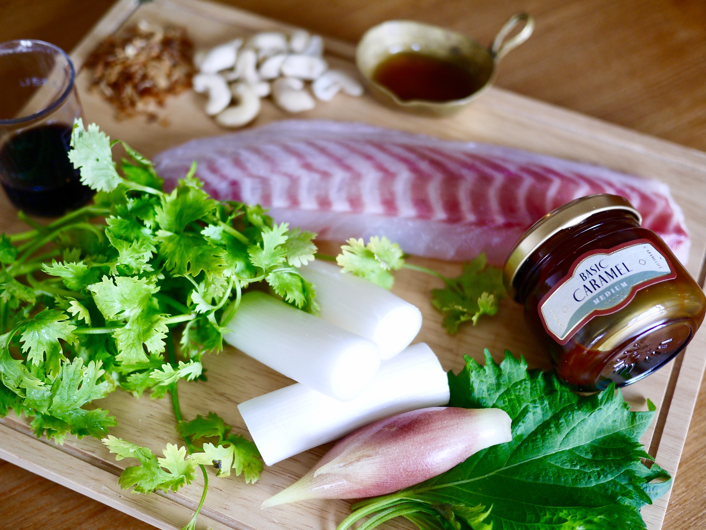 プロに教わる、目からウロコのキャラメルレシピ 鯛のお刺身サラダwithキャラメル。