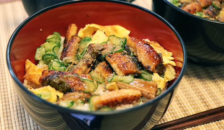 土用の丑の日にはうなぎを食べよう!うなぎときゅうりの錦糸卵ごはん。