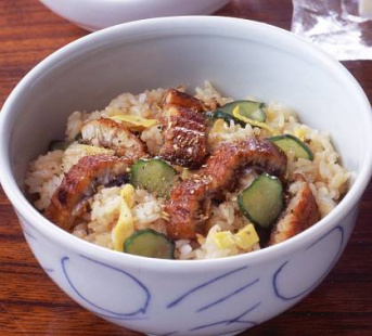うなぎが少しでも満足!うなぎときゅうりの混ぜご飯。