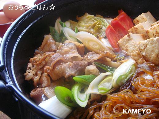 簡単ごちそう!豚すき焼き煮込みうどんハイライフポーク。