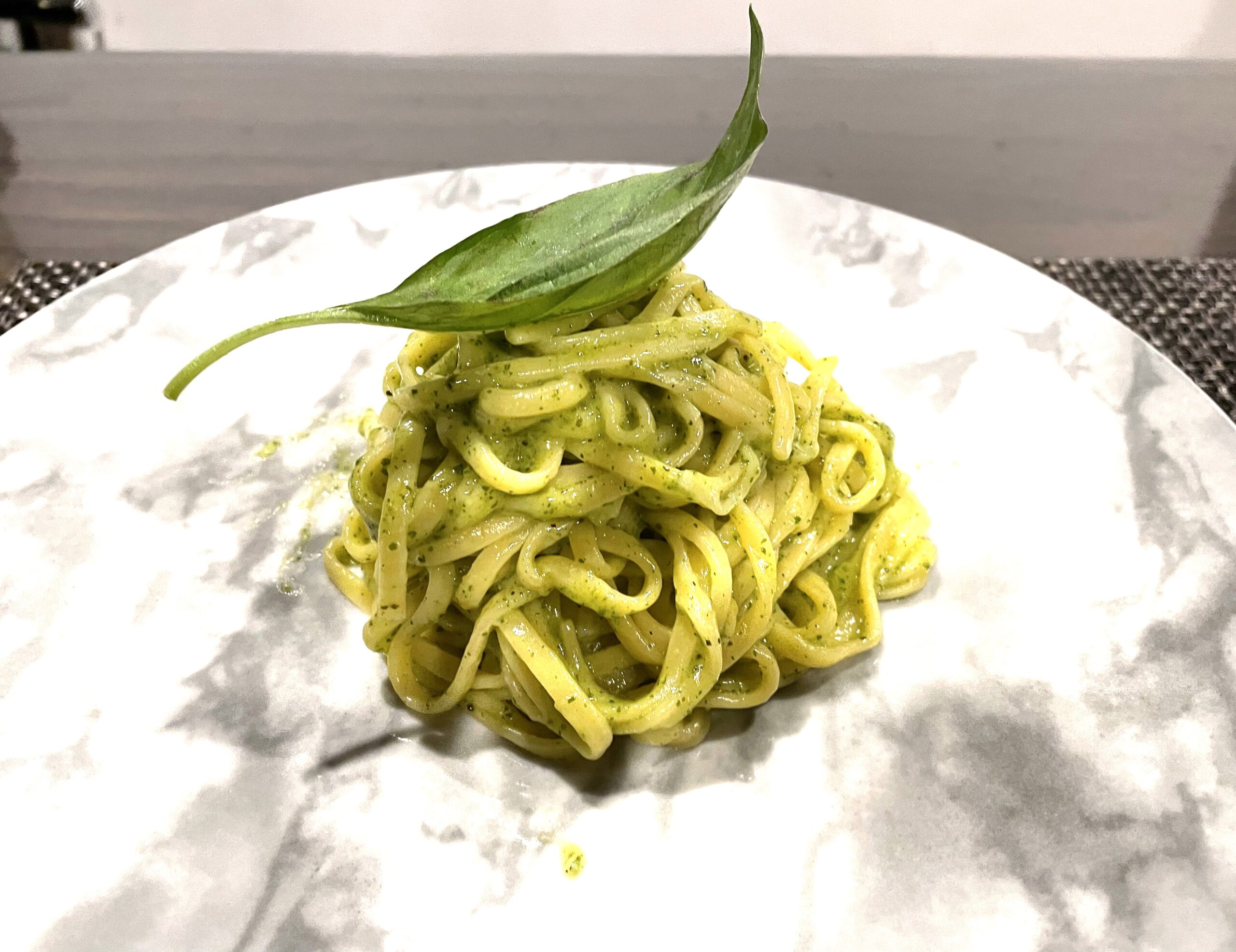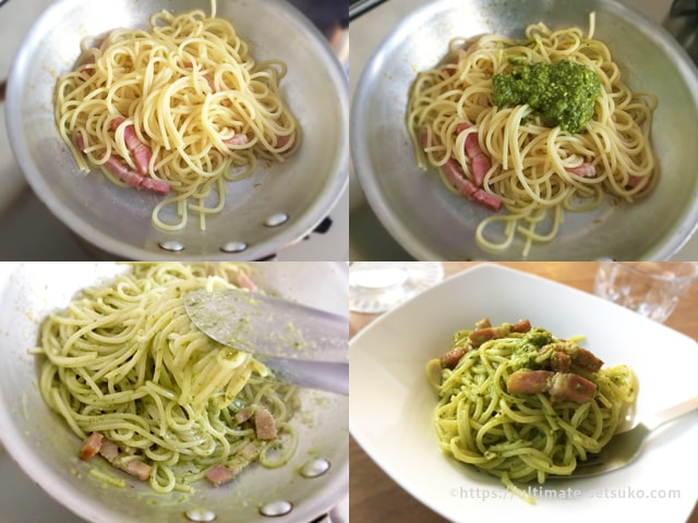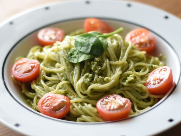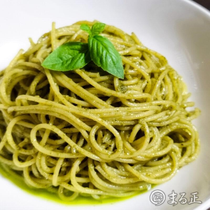 塩こうじバジルソースアレンジレシピ「ジェノベーゼパスタ」。