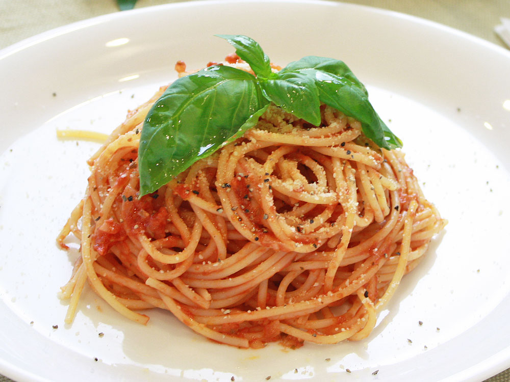 バジル風味のトマトソース・スパゲッティのレシピママパンWEB本店 小麦粉と優れた食材をそろえるお店。
