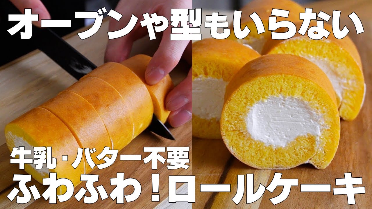 材料3つ オーブンなし!ロールケーキ作り方!, 材料 , ◯ロールケーキ, ・ホットケーキミックス150g, ・スーパーカップバニラ150g,・しぼるだけホイップ1個, 1.バニラアイスを500wの電子レンジで2分加熱して溶かす。, 2.ホットケーキミックスを入れて混ぜる。,3.卵焼き器に生地を半量流し入れる。, 4.蓋をして極弱火で10〜15分焼き、裏返して5分焼く。,。