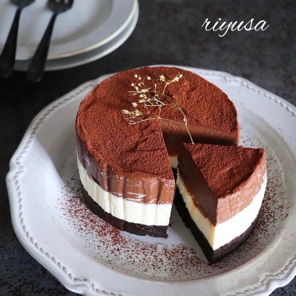 オーブン不要!!レンジで作る3層のショコラチーズケーキriyusa日和。ザッパレシピで褒められおやつと時々おかず。