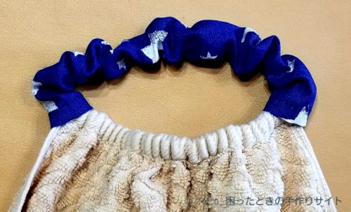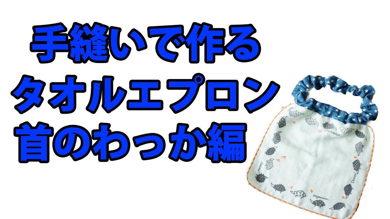 手縫いで作るタオルエプロン 生地の説明と首のわっかの縫い方。