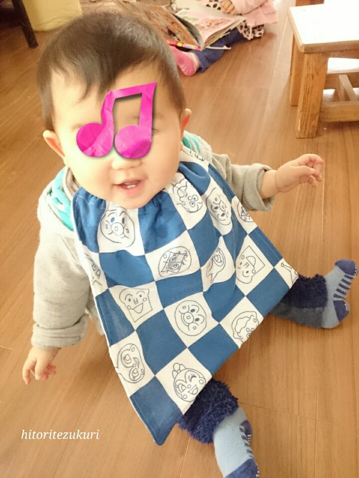 作り方~タオルと手拭いで作る簡単お食事エプロンひとり手作り子育て部。×hananotane。