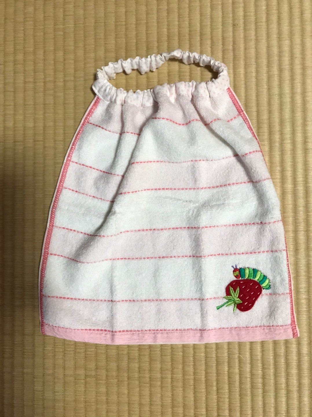 タオルエプロンの作り方100均のタオルでエプロンを作る方法子供のエプロン入園準備タオルDIYセリアのタオルでエプロン。