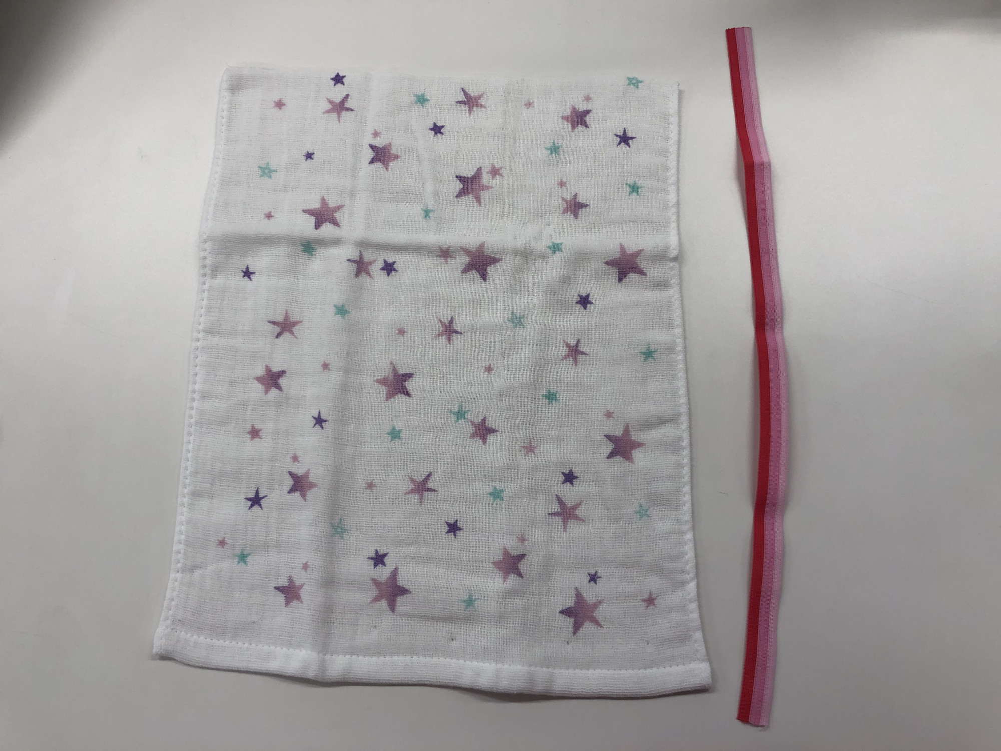 ゴムの長さは? 「お食事エプロン」 おりこうタオル を作りました。簡単すぎる作り方 保育園- はやぶさCOFFEE。