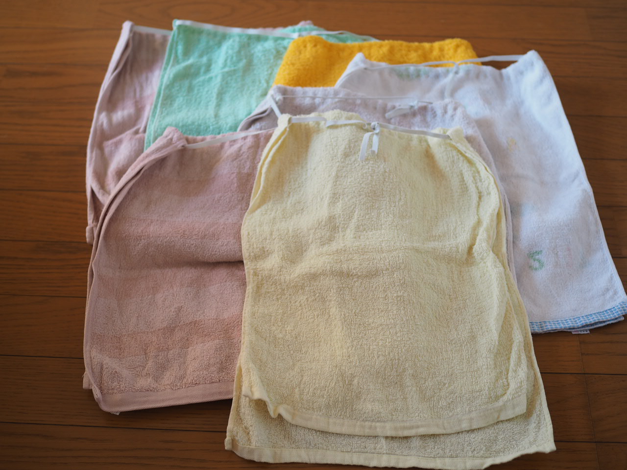 ミシン不要 タオルと100均のゴムで作るお食事エプロン!未満児の入園準備に凡人主婦の暮らしメモ。