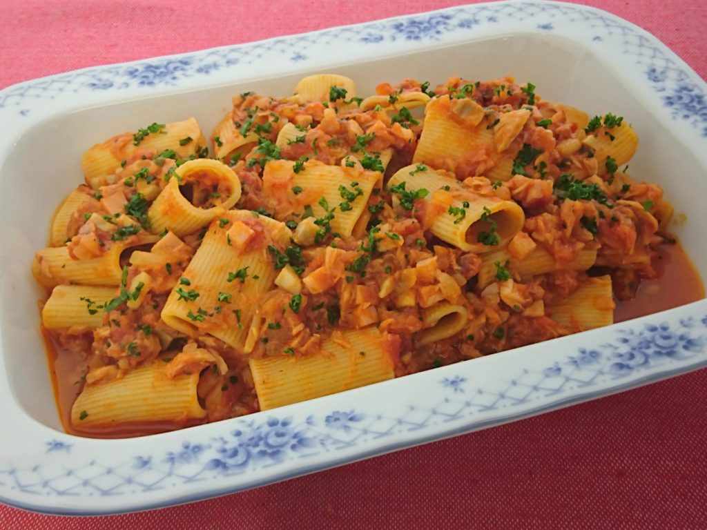 ツナとトマトソースのマカロニ イタリア共和国世界の地方料理。