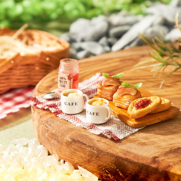 ミニチュアデザートセット ハンドメイド ミニチュア ピクニックセット バスケット・パン・スイーツ・ドリンク・カトラリーハンドメイド雑貨・自然素材のお店小さな雑貨屋ミーシャの木の実。