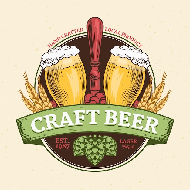 クラフトビールヴィンテージイラスト無料ベクトル素材。