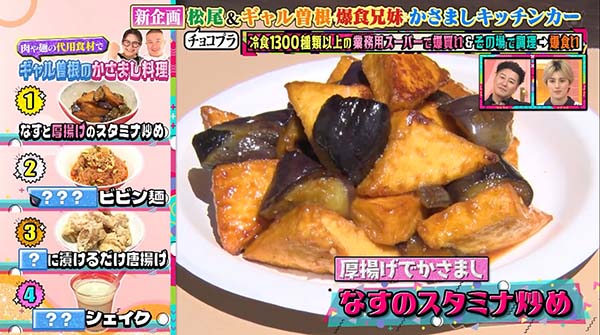 ギャル曽根のかさまし料理! ,ザ共通テン,ギャル曽根,チョコプラ松尾,スタミナ料理,厚揚げ,節約料理。