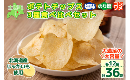 北海道 ポテトチップス 塩 のり塩 コンソメ 食べ比べ 3種 12袋 計36袋 セット 菓子 ポテト スナック おやつ ポテチ のりしお うす塩じゃがいも ジャガイモ お取り寄せ まとめ買い 詰め合わせ 詰合せ 送料無料 十勝 士幌町 N01- 北海道士幌町ふるさとチョイス。