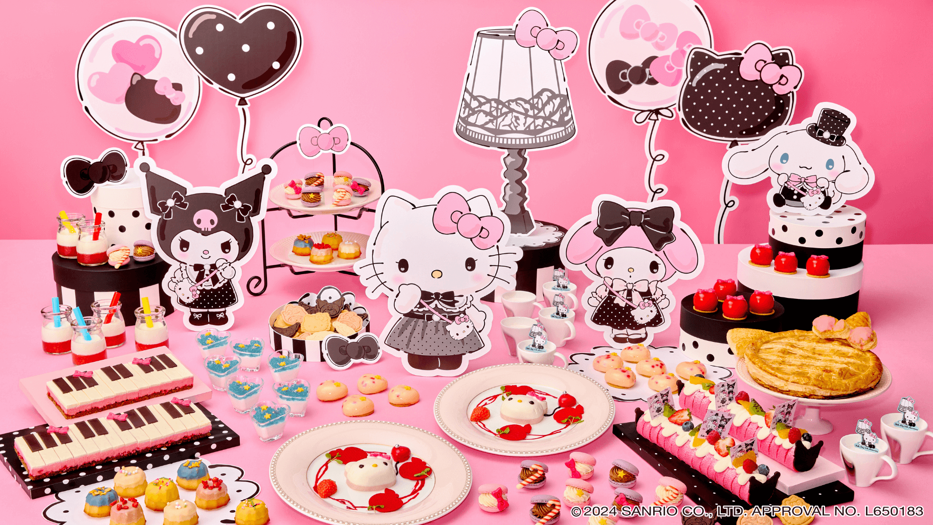 ハローキティと双子の妹ミミィが主役のスイーツビュッフェ 70年代風シリーズ ハローキティのわくわくスイーツパーティー京阪ホテルズ&リゾーツ株式会社のプレスリリース。