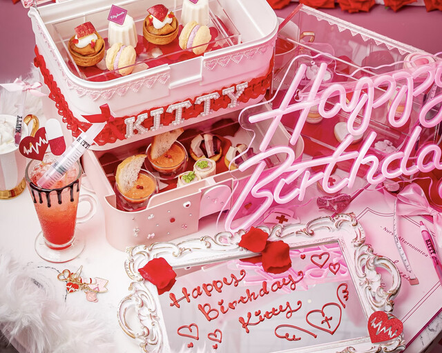 Kitty Sweets キティスイーツバラに囲まれたピンクのカフェでアフタヌーンティーを。