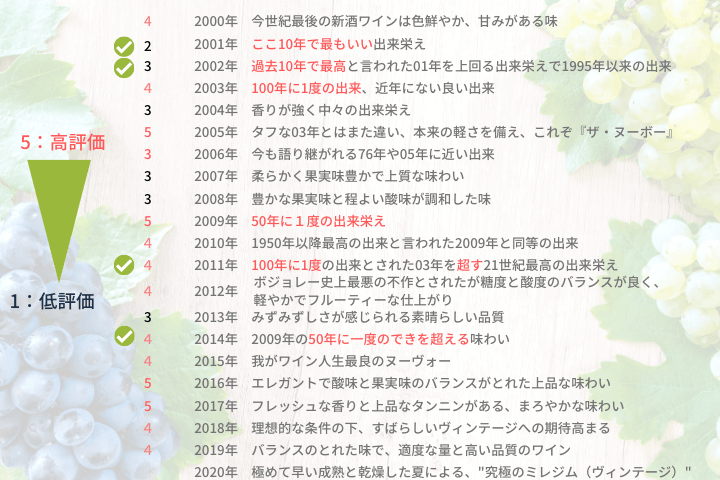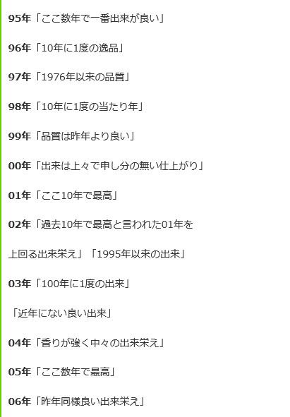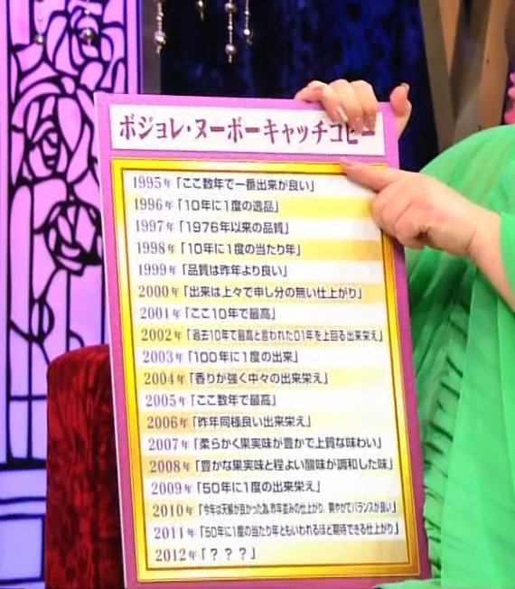 アリス◇リネレボ応援🍥 on X: "明日はボジョレー解禁の日です ボジョレー・ヌーボーの過去のキャッチコピーと評価の順番をまとめましたボジョレーボジョレーヌーボー https:t.co aCY8o7OpDW"X。